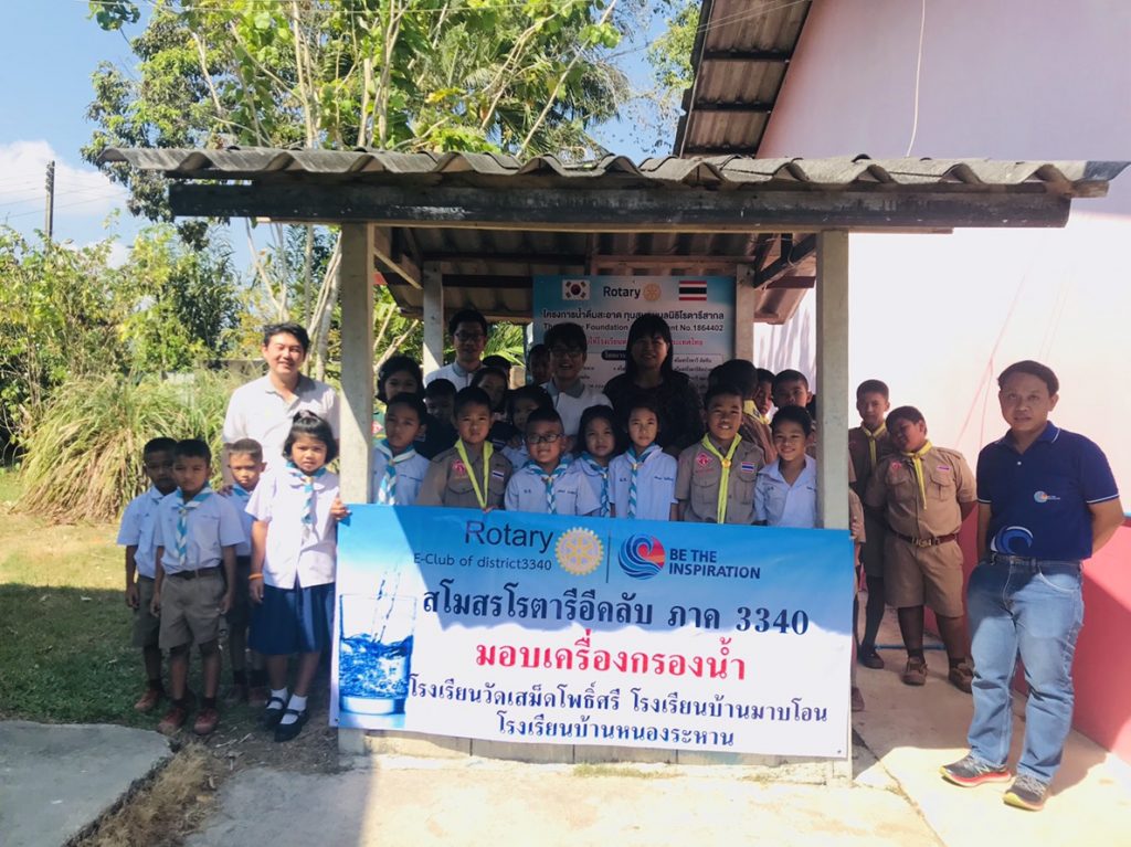 เมื่อวันที่ 19 ธันวาคม 2561 สโมสรโรตารี E-Club ภาค 3340 โดย นย.ชัยวัฒน์ เจริญวัธน์ นยก.พรรณธิดา โรจน์วรรณสินธุ์ และlสมาชิกมวลมิตรโรแทเรียนสโมสรโรตารี E-Club ภาค 3340 ได้มอบเครื่องกรองน้ำ 1 เครื่องให้โรงเรียนบ้านมาบโอน โดยได้รับการสนับสนุน จากสโมสรโรตารีชลบุรี ภาค 3340 RI