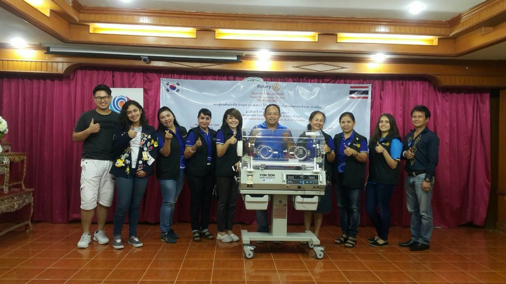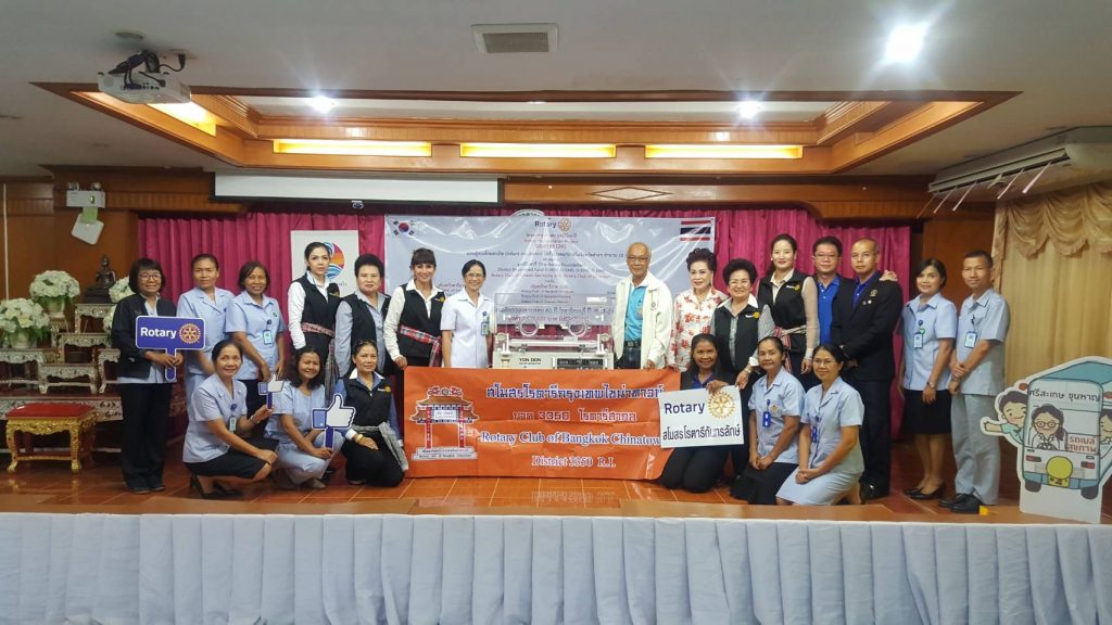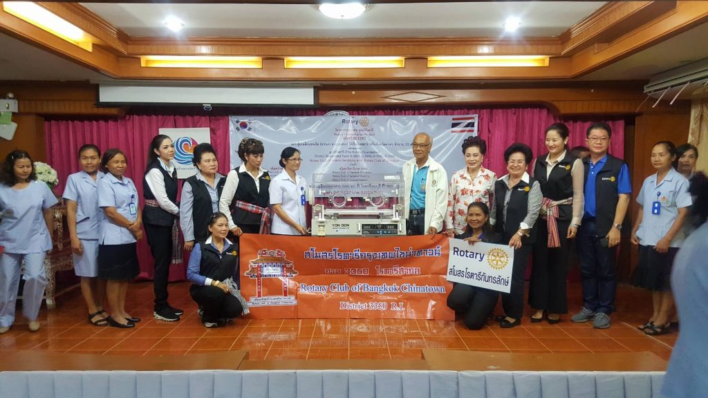 เมื่อวันที่ 12 กันยายน 2561 ที่ผ่านมา สร.กรุงเทพไชน่าทาวน์ ภาค 3350 ร่วมกับสโมสโรตารีกันทรลักษ์ ภาค 3340 ได้จัดพิธีส่งมอบตู้อบเด็กแรกเกิดที่มีปัญหา ( incubator) ให้แก่ รพ.ขุนหาญ อ.ขุนหาญ จังหวัดศรีสะเกษ นำทีมโดยท่าน อน.อโนมา วิจิตรวิกรม และท่านนายกภูษิต พบลาภ โดยมีแพทย์หญิงรัชฎาพร รุญเจริญ ผอ.รพ.ขุนหาญเป็นผู้รับมอบ