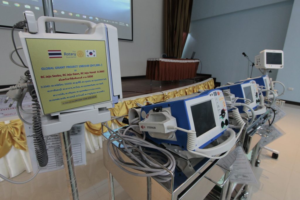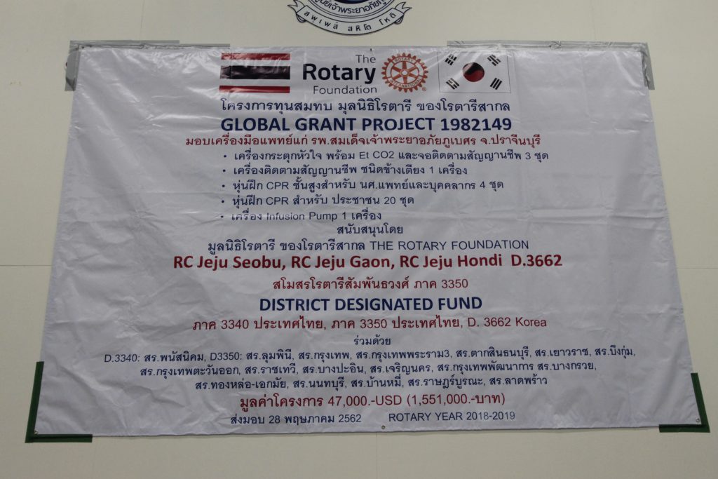 สโมสรโรตารี พนัสนิคม โครงการมอบเครื่องกระตุกหัวใจและหุ่นเรียน CPR โดยความ ร่วมมือของภาค 3350 ร่วมกับ 3340 มอบให้โรงพยาบาลอภัยภูเบศร ปราจีนบุรี