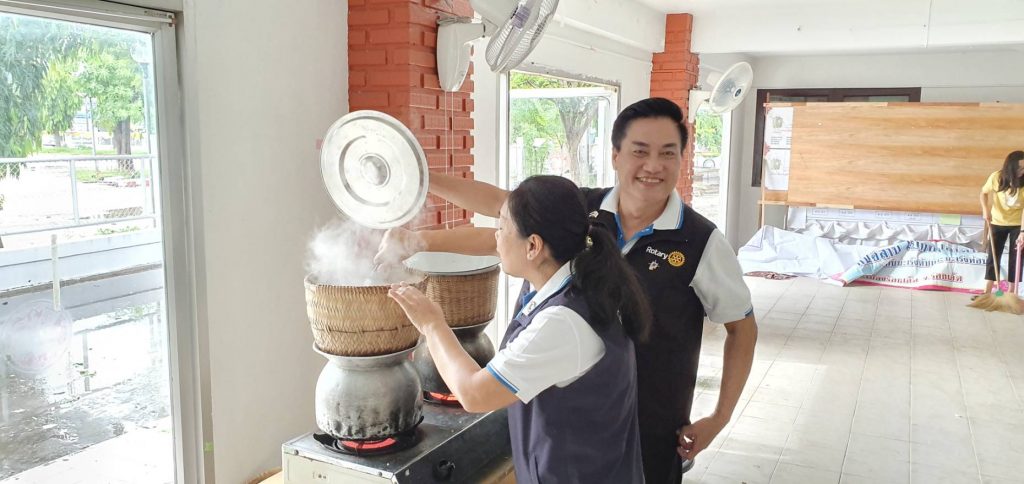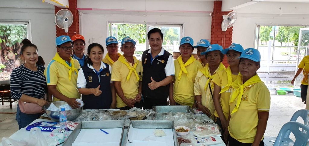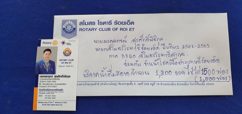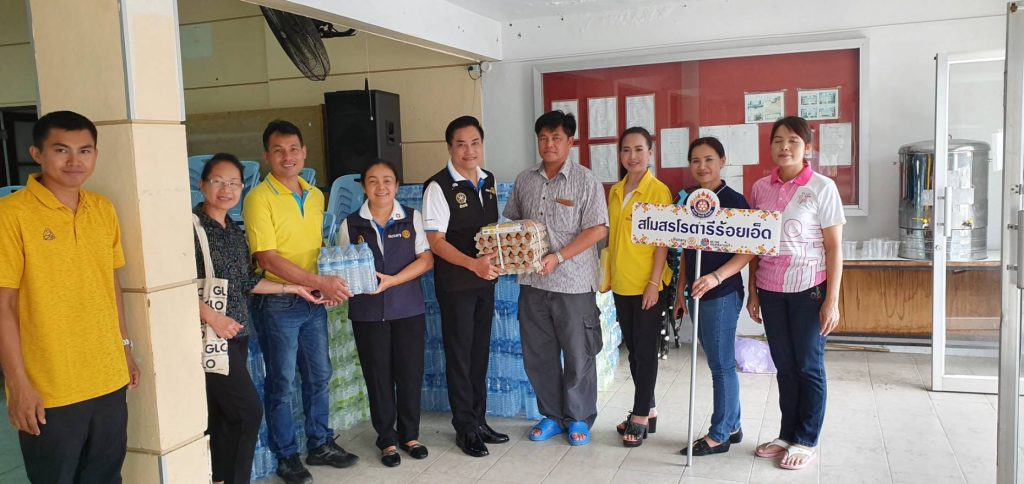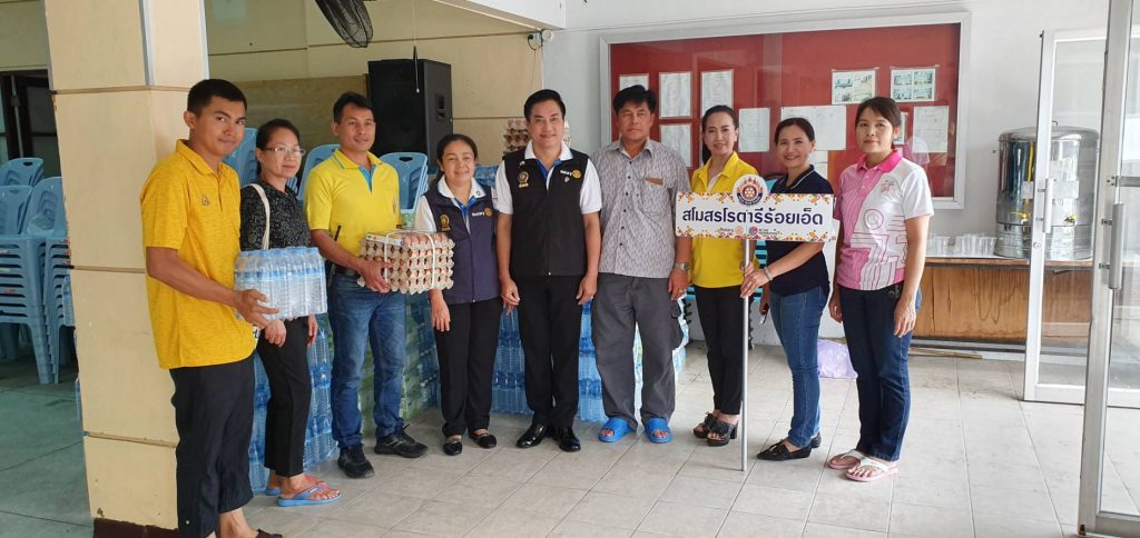 อุทกภัยน้ำท่วมบ้านเรือน พี่น้อง ทั่วพื้นที่ จังหวัดร้อยเอ็ด นายมงคลกรณ์ สุรศักดิ์นิธิกุล นายกสโมสรโรตารีร้อยเอ็ด ท่าน นยก.วารุณี สุริยวนากุล ท่าน นยล.เพชรสุภางค์ ธีระรัตนนุกุลชัย ท่าน รทร.นฤมล ปิยอ้ษฎารัตน์ เหรัญญิก ปีบริหาร 2562-2563 ร่วมบริจาคเบี้ยงต้น นำน้ำดื่มสอาด จำนวน 600โหล(7,200ขวด) เนื้อหมูประกอบอาหาร จำนวน 420 กิโลกรัม ไข่ไก่ จำนวน 1,500 ฟอง มอบสมทบครัวพระราชทาน ณ หอประชุมอำเภอเมืองร้อยเอ็ด เมื่อวันที่ 31 สิงหาคม พ.ศ. 2562
