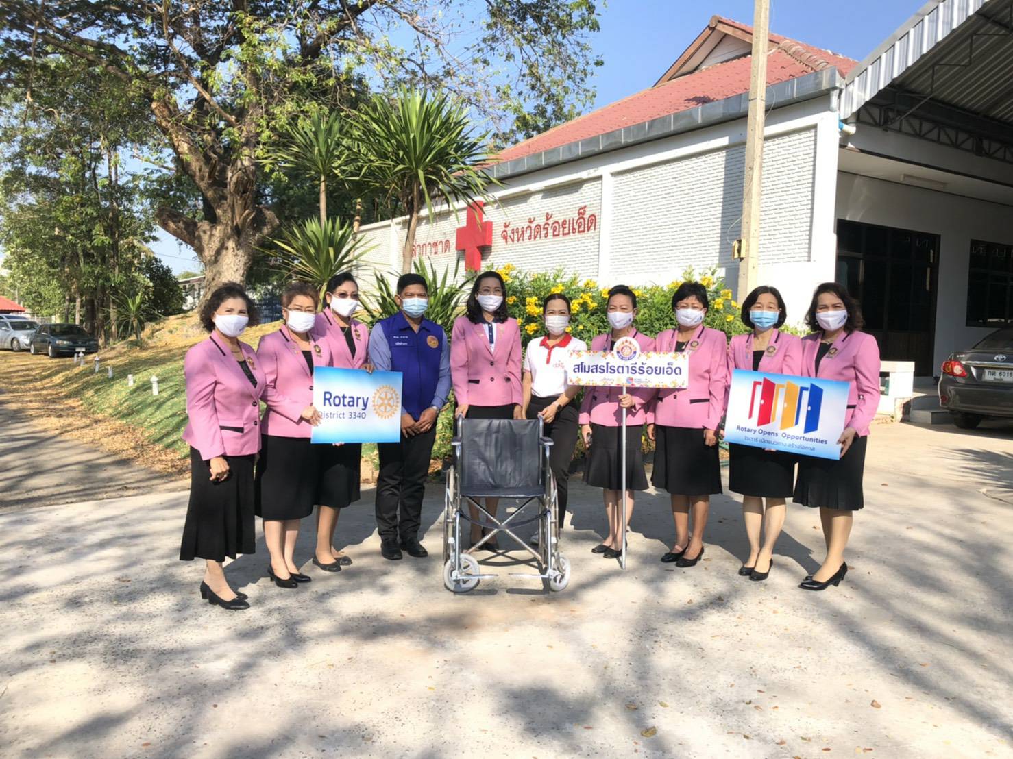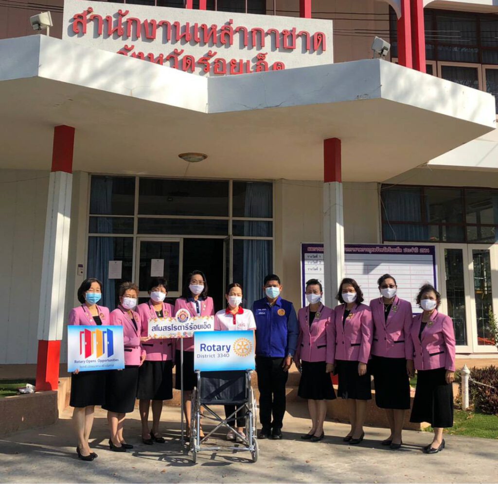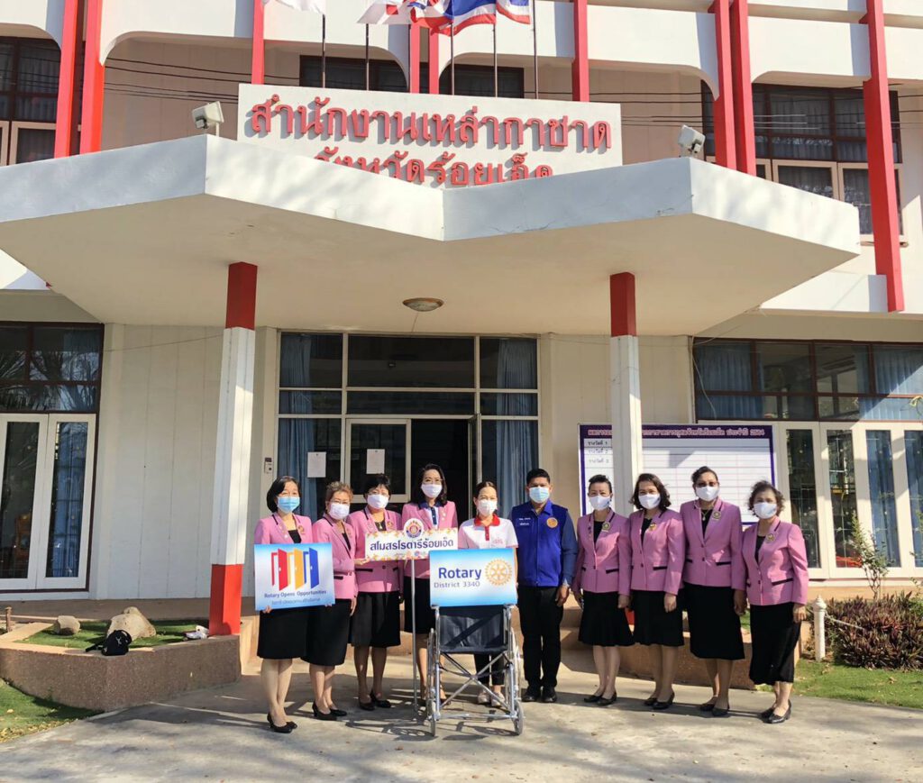 วันที่ 3 กุมภาพันธ์ 2564 สโมสรโรตารีร้อยเอ็ด นำโดย นย.ศิริภา อารยะสัจพงศ์ และมวลมิตรโรแทเรียน ร่วมมอบรถเข็นคนพิการ ณ ที่ว่าการอำเภอโพธิ์ชัย เพื่อใช้ขนย้ายผู้สูงอายุ และผู้พิการที่มาติดต่องาน ซึ่งรถเข็นได้รับความอนุเคราะห์ จาก อผช บัณจง ธนแพสย์ ในงานนี้ ปลัดอำเภอ เป็นผู้แทนรับมอบฯ และ นายกเหล่ากาชาดได้ให้เกียรติเป็นสักขีพยานการมอบรถเข็นครั้งนี้ด้วย