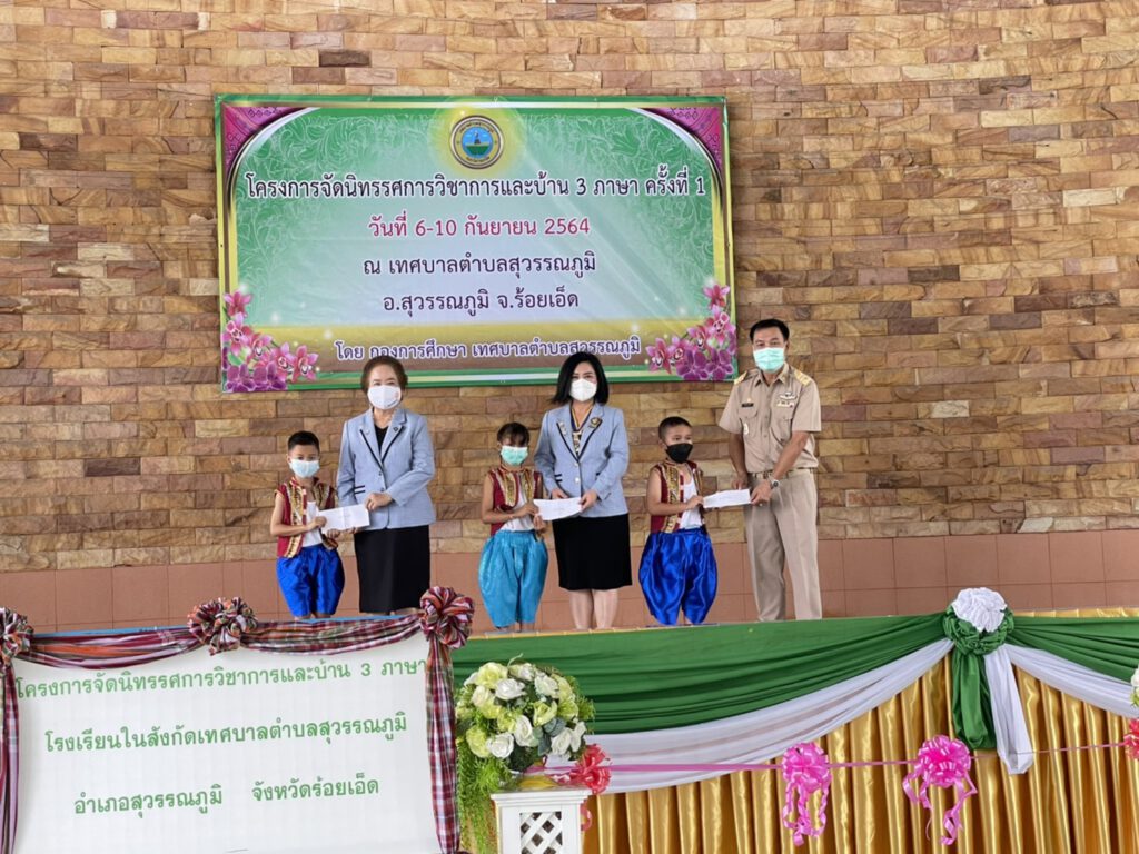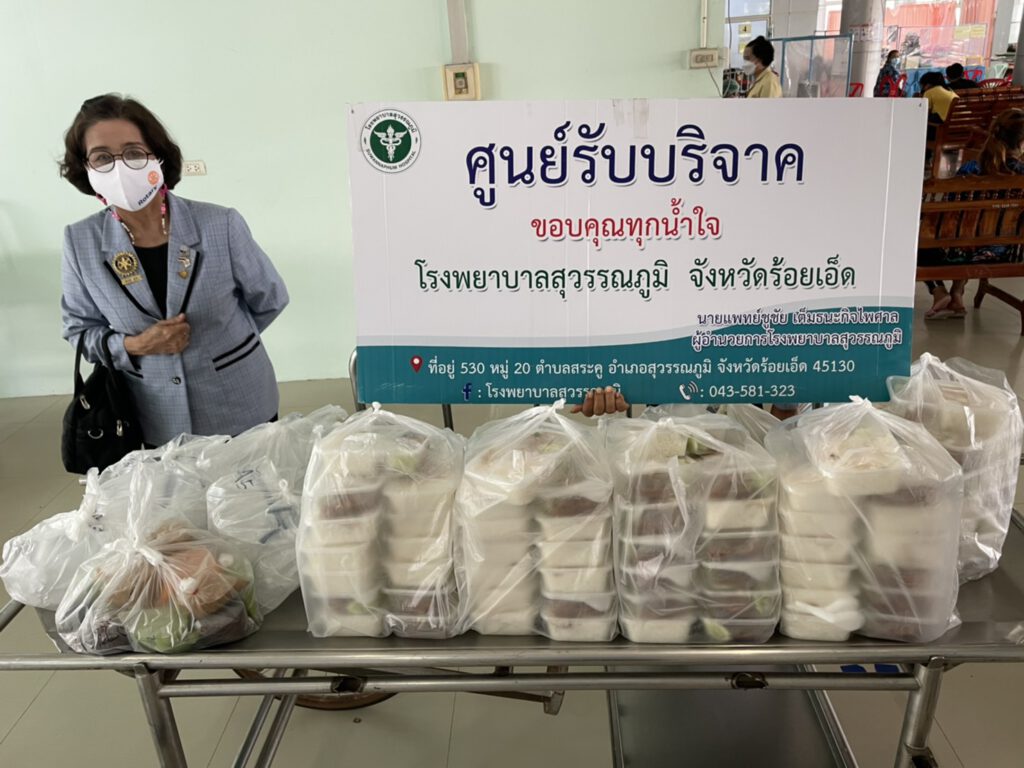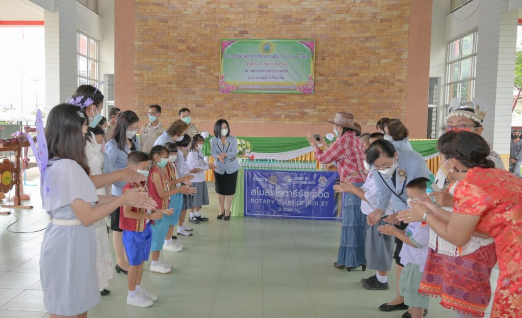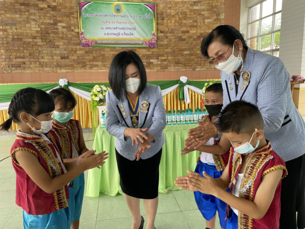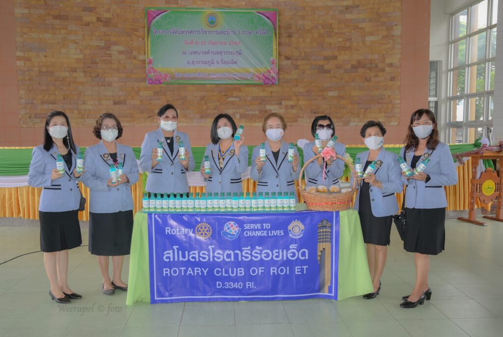 วันที่ 6 กันยายน 2564 เวลา 09.00 น. สโมสรโรตารีร้อยเอ็ดภาค 3340 นำทีมโดย นย.เพชรสุภางค์ ธีระรัตนนุกุลชัย พร้อมด้วยมวลมิตรโรตารี ร่วมกิจกรรมแห่งการศึกษาพื้นฐาน นิทรรศการวิชาการ บ้าน 3 ภาษา ไทย จีน และอังกฤษ ของรร.อนุบาลเทศบาลสุวรรณภูมิ ระหว่างวันที่ 6-10 กันยายน 2564 จัดโดย รทร.ดร.สนธยา น้อยวังคลัง พร้อมกันนี้ ได้มอบ แอลกอฮอล์เจลและสาธิตวิธีการใช้อย่างถูกวิธีให้นักเรียนอนุบาล ณ หอประชุมเทศบาลตำบลสุวรรณภูมิ อ.สุวรรณภูมิ จ.ร้อยเอ็ด โดยนายกสมศักดิ์ เศรษโฐ เป็นประธานในพิธีเปิดและรับมอบแอลกอฮอล์เจล และได้ไปมอบอาหาร กลางวันที่ รพ.สนามสุวรรณภูมิ เพื่อสนับสนุนการปฎิบัติงานของบุคลากรทางการแพทย์ ในการสู้ภัยโควิด-19 ต่อไป