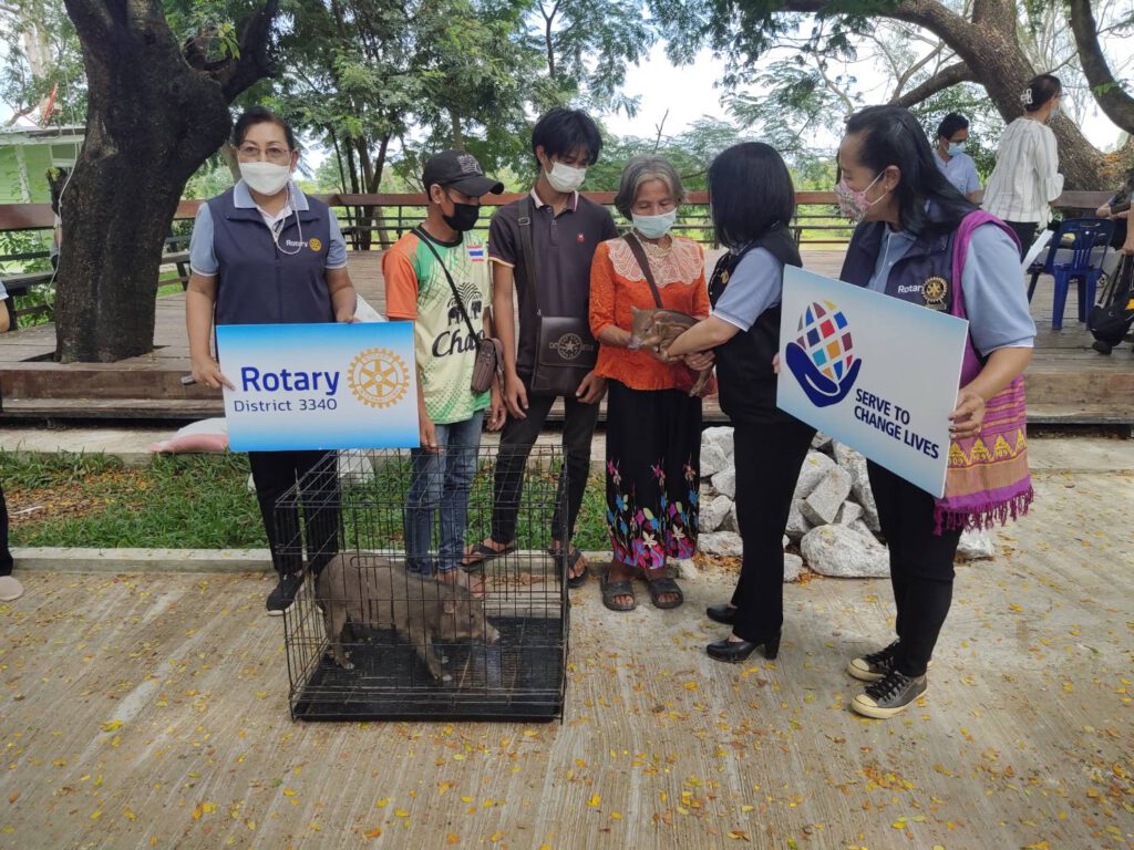 วันที่ 12 ตุลาคม 64 สโมสรโรตารีร้อยเอ็ด โดยนายกเพชรสุภางค์ ธีระรัตนนุกุลชัย พร้อมมวลมิตรโรแทเรียน ร่วมจัดกิจกรรมกับ ศาลเยาวชนและครอบครัว จังหวัดร้อยเอ็ด โดยนายสุรเกียรติ กุลดำรง ผู้พิพากษาหัวหน้าศาล ร่วมกับสถานพินิจและคุ้มครองเด็กและเยาวชน จังหวัดร้อยเอ็ด โดยนายผดุงศักดิ์ จุลพันธ์และรพ.ธวัชบุรี โดย นพ.ประกาศ เจริญราษฎร์ ผอ.รพ.ธวัชบุรี ร่วมให้กำลังใจเป็นพี่เลี้ยงแก่ เด็ก เยาวชน และครอบครัว ทั้งหมด 5 ครอบครัว โดยการมอบ สุกร 1 คู่พร้อมอาหารสัตว์ / ครอบครัว เพื่อส่งเสริมพัฒนาคุณภาพชีวิต สร้างรายได้ พัฒนาคุณภาพชีวิต เด็ก เยาวชน และครอบครัว ในวิถีการเกษตรกรรม ตามแนวพระราชดำริ ในหลวง ร.9