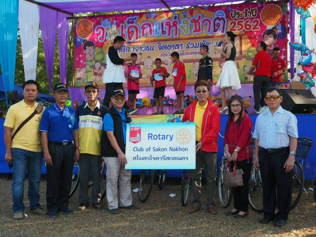 สโมสรโรตารีสกลนคร ทำกิจกรรมวันเด็กมอบจักรยาน 40 คัน ให้กับเด็กที่มีความสามารถ แล้วเป็นเด็กที่ขาดโอกาสในการ มาโรงเรียนต้องเดินทางระยะทางที่ไกลจากบ้านมาโรงเรียน ทำให้การเดินทางยากลำบาก การให้จักรยานในครั้งนี้ถือเป็นของขวัญวันเด็กที่สามารถให้เด็กได้ใช้เดินทางมาโรงเรียนได้สะดวกมากขึ้น