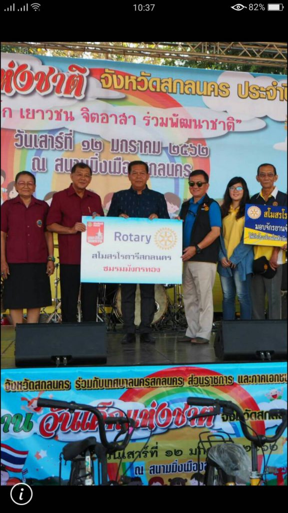 สโมสรโรตารีสกลนคร มอบจักรยานให้ในวันเด็กแห่งชาติ
