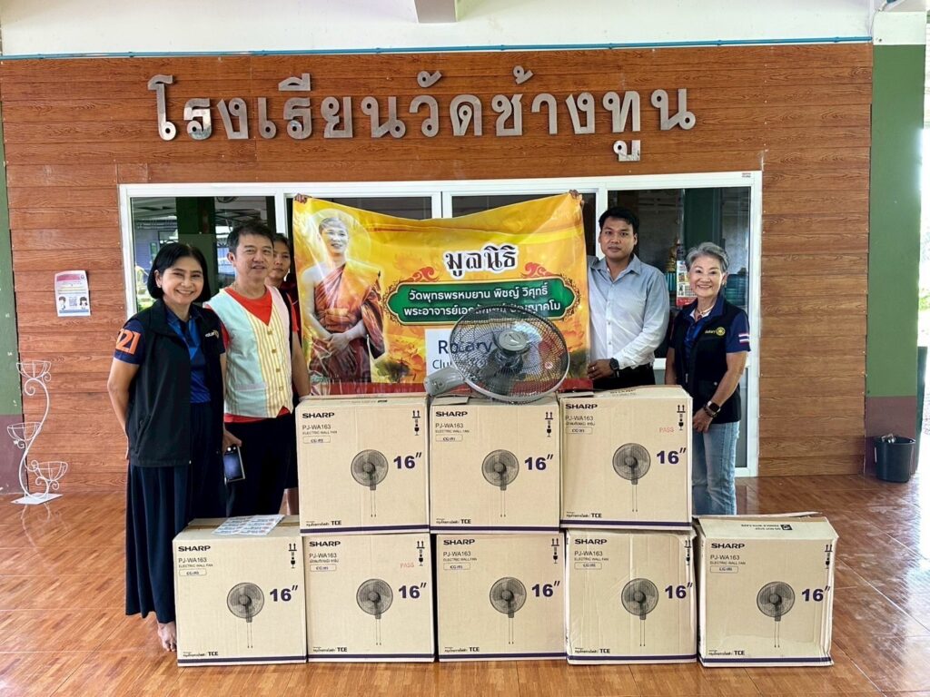 วันที่ 9 กันยายน 68 สโมสรโรตารีตราด นำโดยนายกลินจง วงษ์เฉลิมสุข ร่วมกับมูลนิธิวัดพุทธพรหมยาน พิชญ์วิศุทธิ์ มอบพัดลมให้กับโรงเรียนวัดช้างทูน อ. บ่อไร่ จำนวน 8 ตัว ใช้ติดห้องจัดการเรียนการสอนของนักเรียน